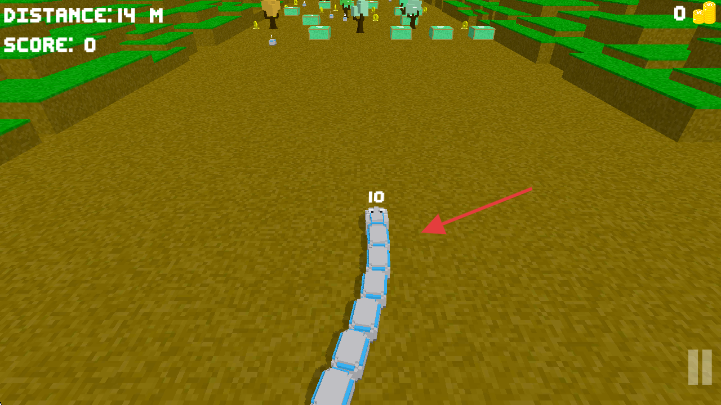 2、在過程中,控制蛇形物體前進(jìn),躲避障礙物,收集金幣,增加距離和分?jǐn)?shù)。