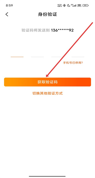 3、在身份驗證頁面點擊獲取驗證碼,等待驗證碼發(fā)送到綁定手機號。
