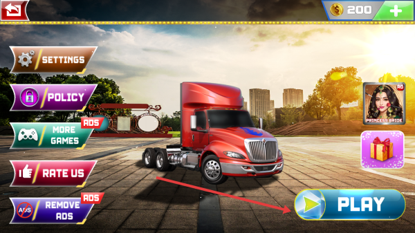 1、在游戲初始界面,點擊右下角的【PLAY】按鈕,進入卡車選擇界面。