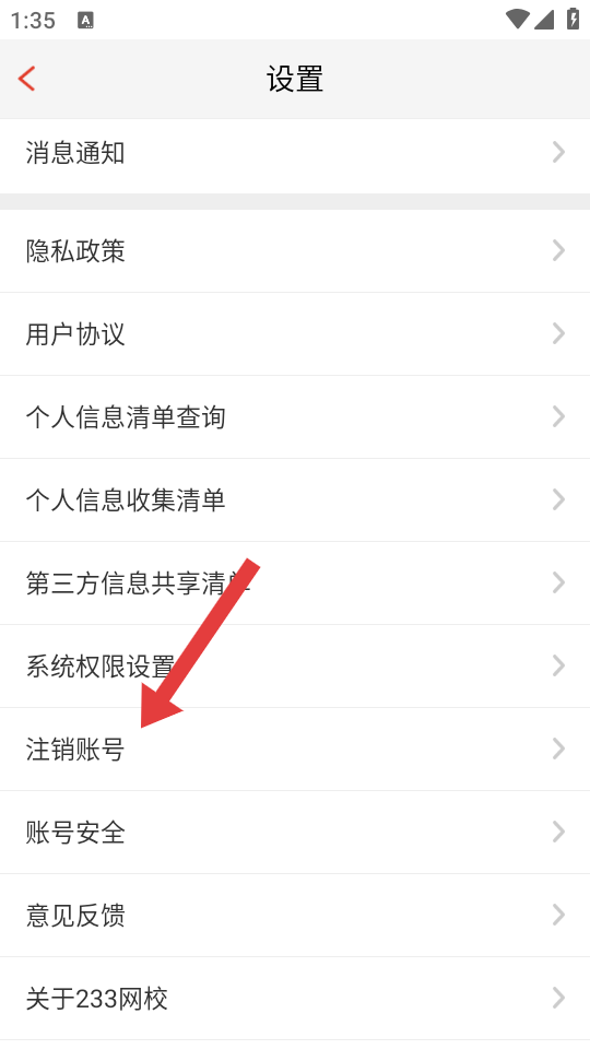 2、在設(shè)置頁(yè)面,需要點(diǎn)擊注銷(xiāo)賬號(hào)的選項(xiàng),進(jìn)入賬號(hào)注銷(xiāo)的頁(yè)面。