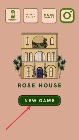 1、游戲初始界面,點擊“NEWGAME”開始游戲,有“APARTMENTGAMES”“PRIVACYPOLICY(隱私政策)”“MOREGAMES(更多游戲)”及Instagram圖標(biāo)。