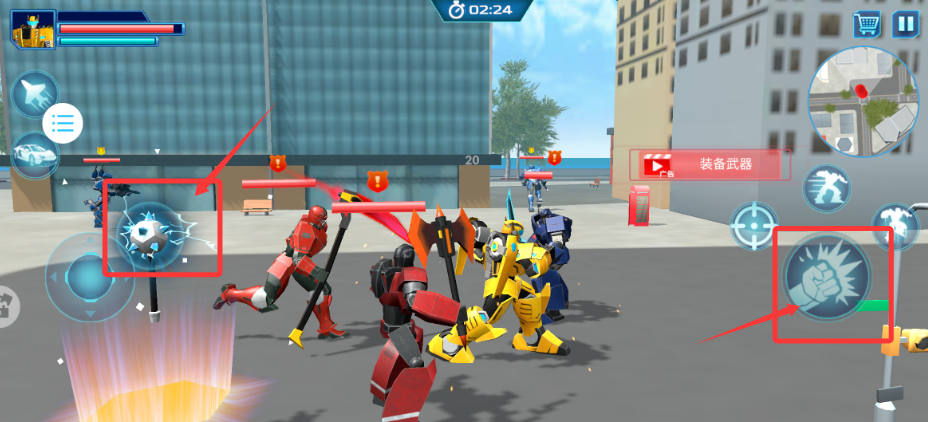 2、點(diǎn)擊技能按鈕釋放特殊攻擊,合理搭配連招可快速消滅敵方機(jī)械單位。