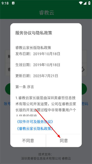 1、打開睿教云app,在彈出的隱私政策界面點擊同意選項。