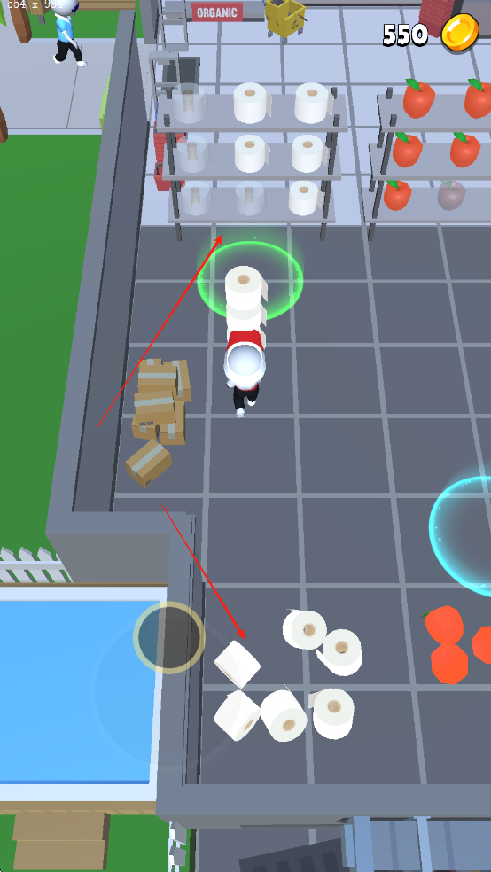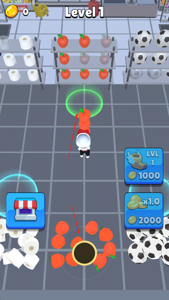 1、進(jìn)入游戲后查看貨架缺貨提示,點(diǎn)擊選中對(duì)應(yīng)商品,滑動(dòng)屏幕操控補(bǔ)貨員移動(dòng),將商品快速搬運(yùn)至空缺貨架位置完成補(bǔ)貨。