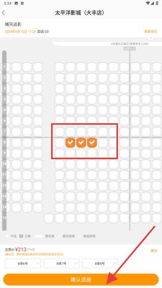 4、點擊后,需要再次明確需要坐的位置,再點擊確認選座即可完成。
