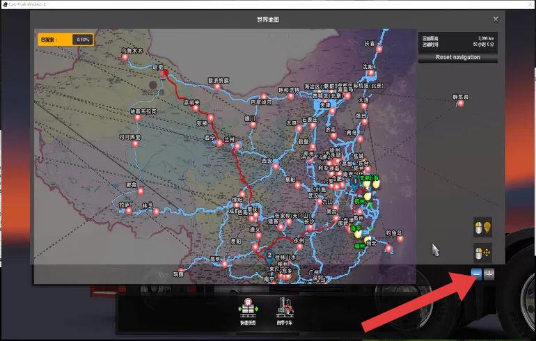 1、在世界地圖界面,點擊右側(cè)箭頭指向的按鈕,確認運輸路線并開啟行程,為駕駛規(guī)劃方向。