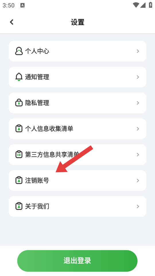 2、在設(shè)置頁(yè)面中,點(diǎn)擊注銷賬號(hào)的選項(xiàng),需要進(jìn)入賬號(hào)注銷的流程。