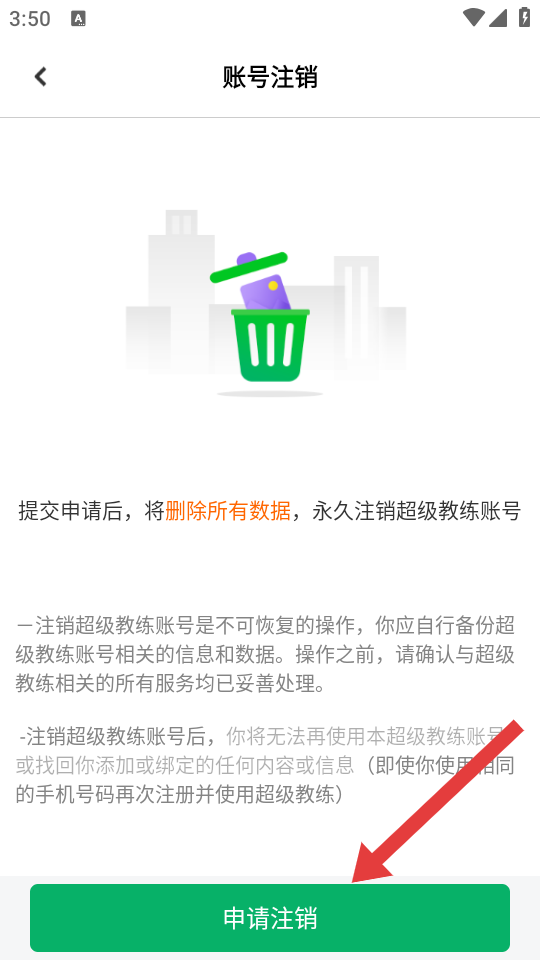 3、在賬號(hào)注銷的頁(yè)面,仔細(xì)閱讀注銷說明后,點(diǎn)擊綠色的申請(qǐng)注銷按鈕。