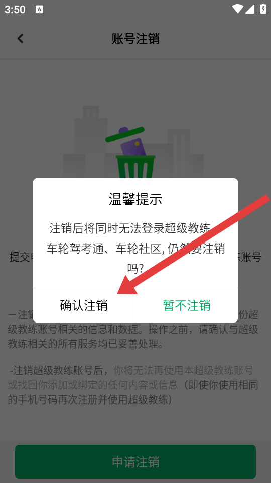 4、在彈出的溫馨提示彈窗中,點(diǎn)擊確認(rèn)注銷按鈕,完成賬號(hào)注銷操作。