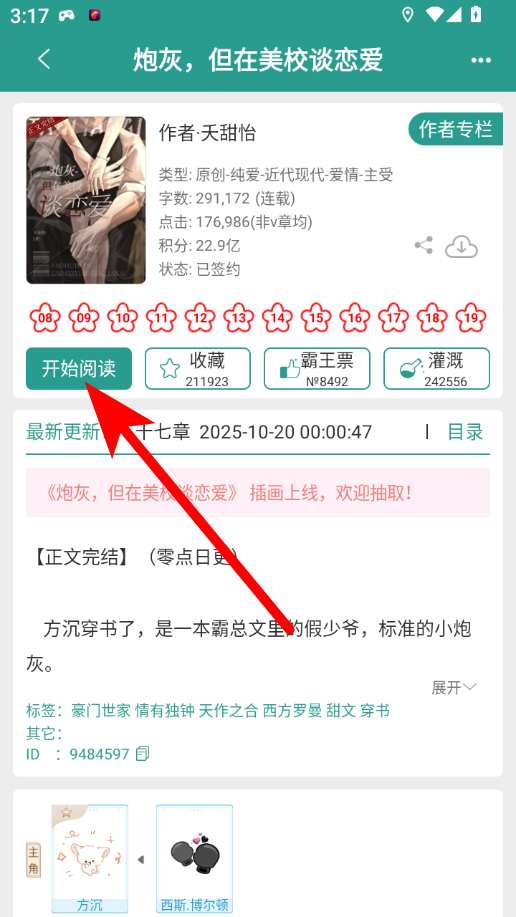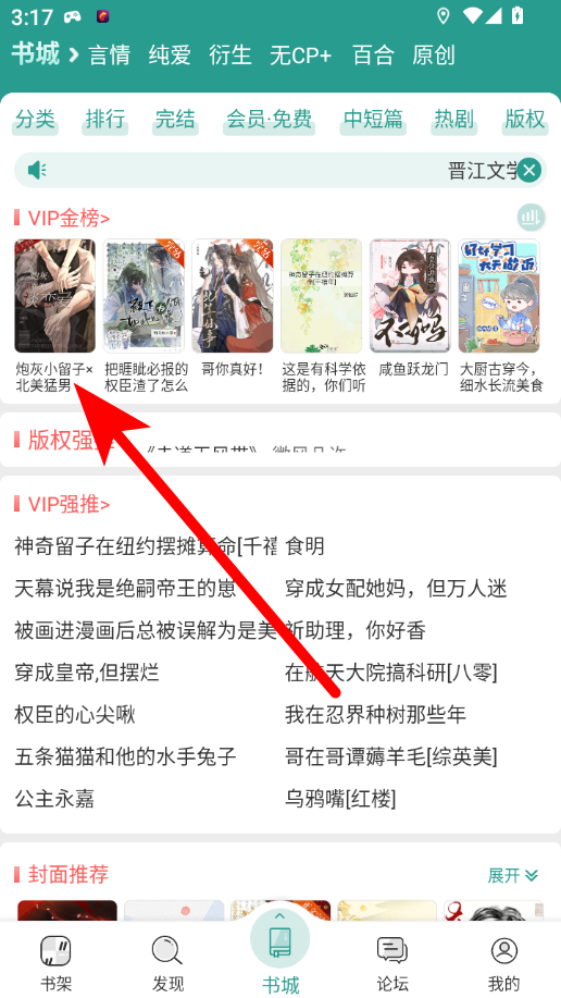 1、在晉江小說(shuō)閱讀APP書城頁(yè)面,點(diǎn)擊想要查看目錄的小說(shuō),進(jìn)入小說(shuō)詳情頁(yè)面。