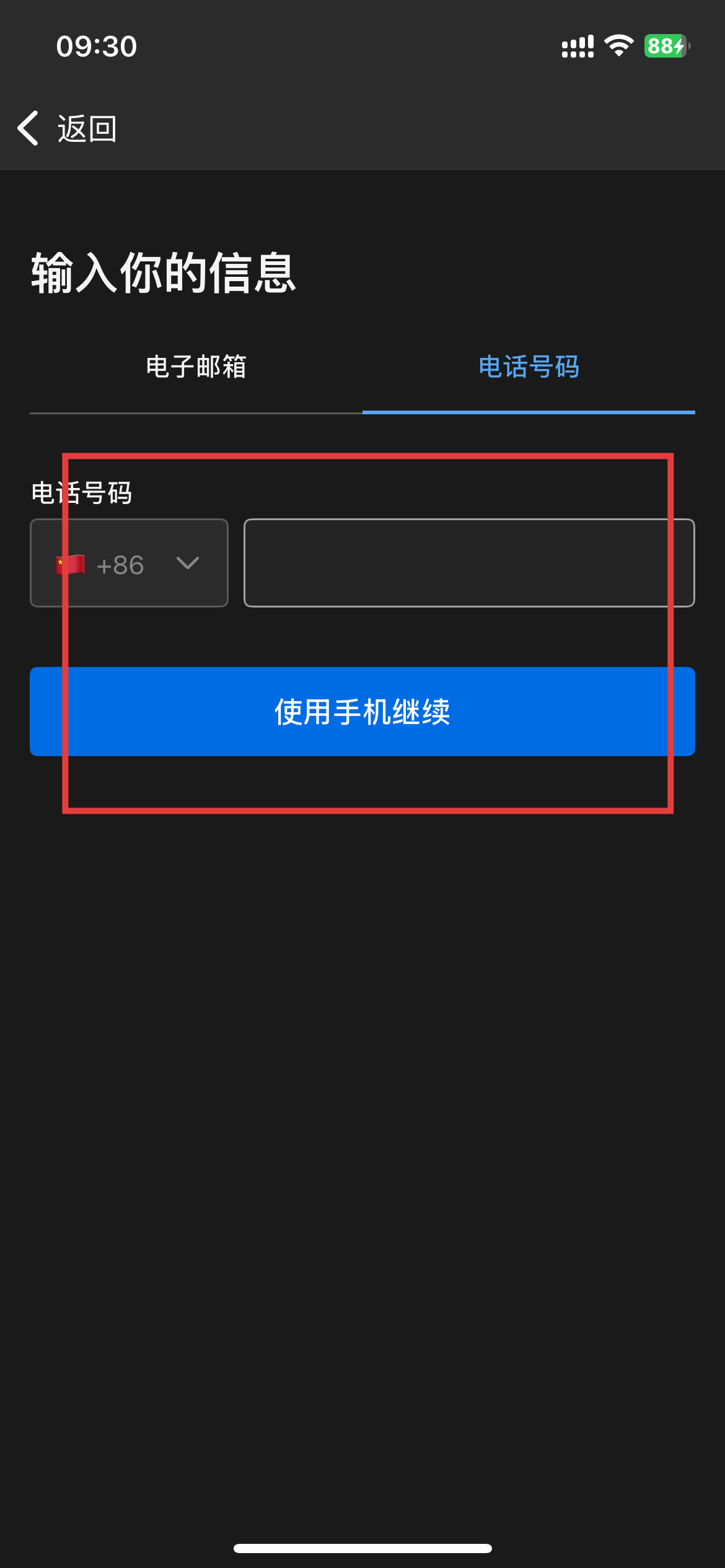 2、在登錄頁面,找到并點擊使用手機繼續(xù)選項。