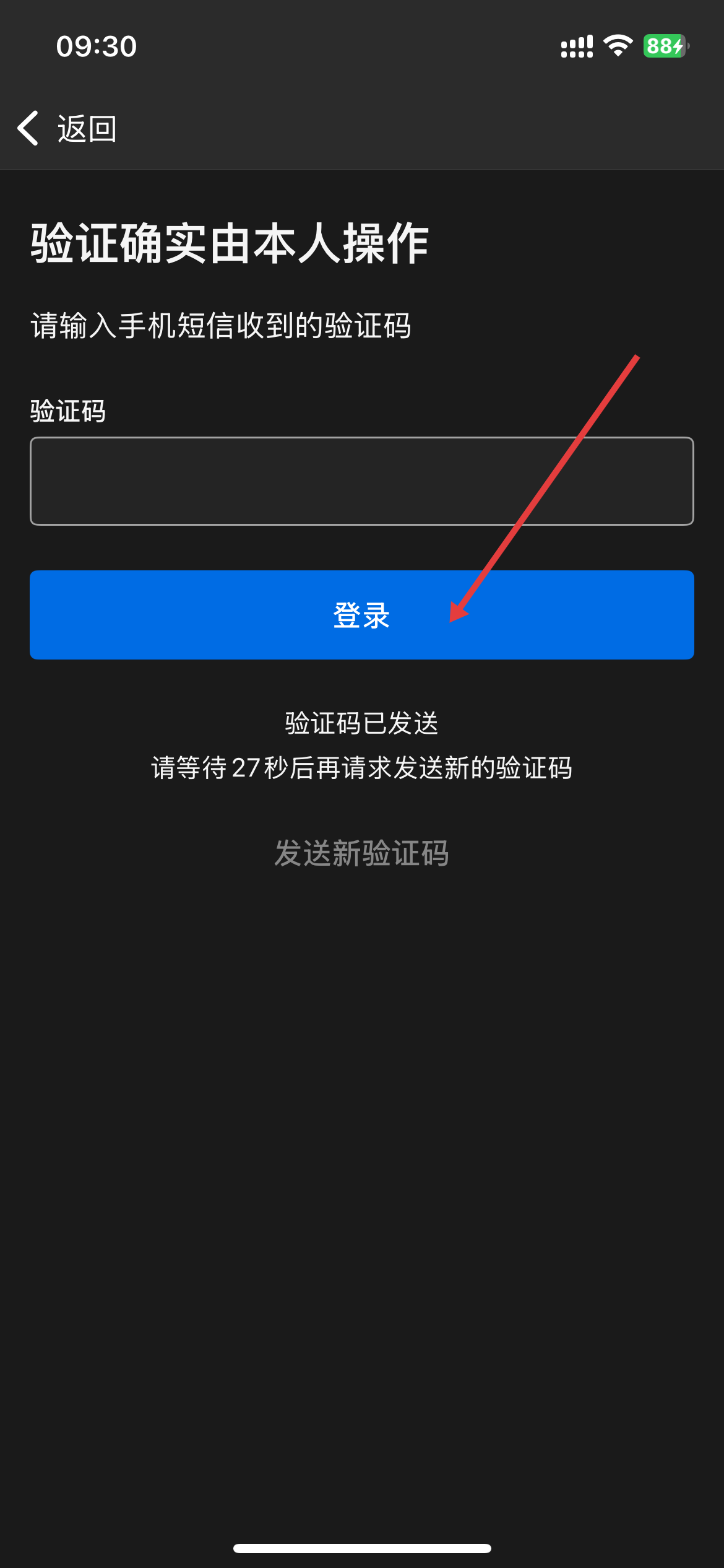 4、點擊發(fā)送驗證碼,輸入收到的驗證碼,點擊登錄,即可完成注冊賬號。