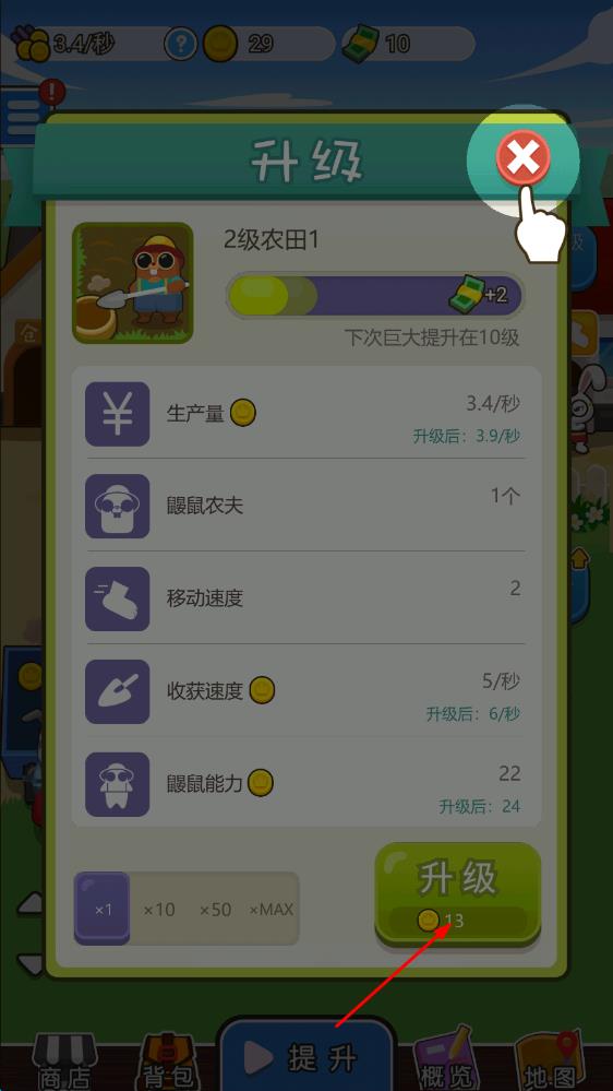 2、升級加速收益:通過升級作物提升產(chǎn)量與成熟速度,快速完成販賣,讓金幣收益實現(xiàn)飛躍式增長。