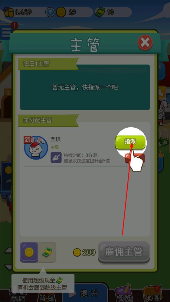 1、初入最強農(nóng)場大亨,玩家作為農(nóng)場主,先著手招募員工,為開展作物種植與銷售工作做好人力準(zhǔn)備。
