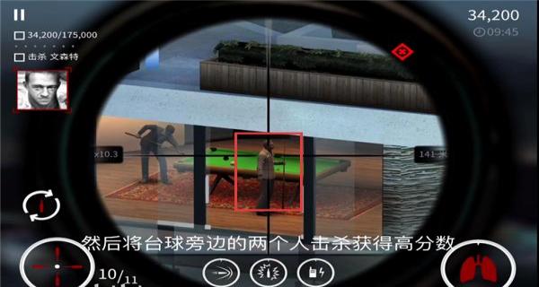 2、干掉警衛(wèi)后,我們的第二個(gè)目標(biāo)就是將臺(tái)球桌旁邊的兩個(gè)人擊殺,會(huì)獲得高分?jǐn)?shù)。