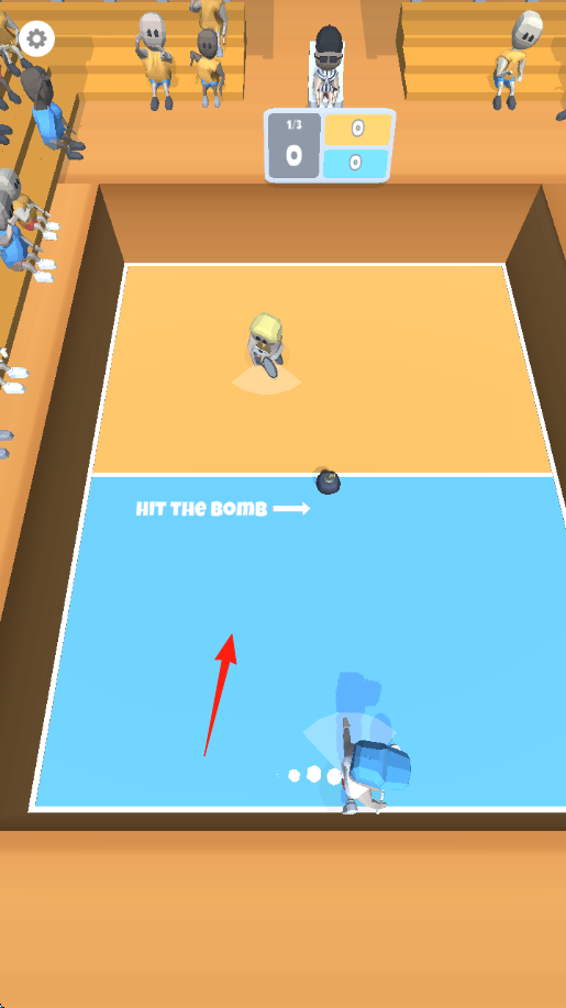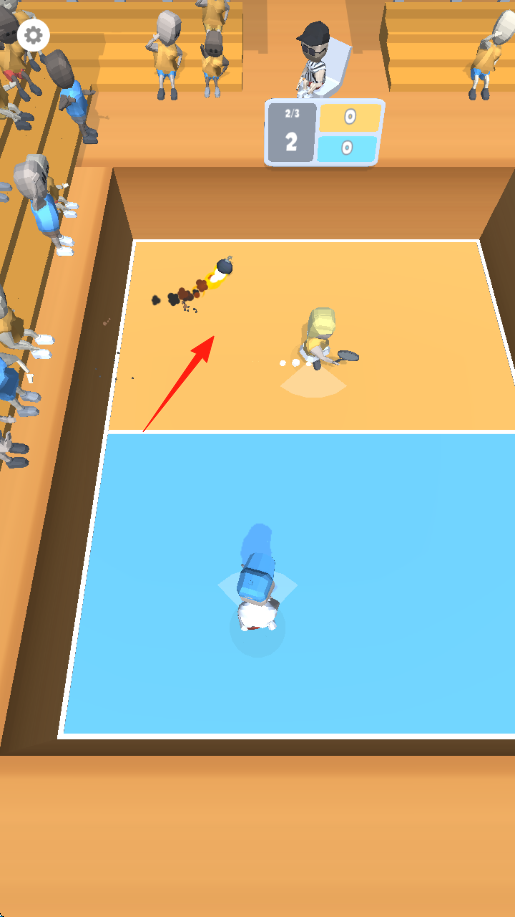 1、對(duì)戰(zhàn)操作在網(wǎng)球場(chǎng)地,控制角色(持球拍),擊打炸彈網(wǎng)球,目標(biāo)命中對(duì)手區(qū)域,觸發(fā)爆炸(圖2)得分。