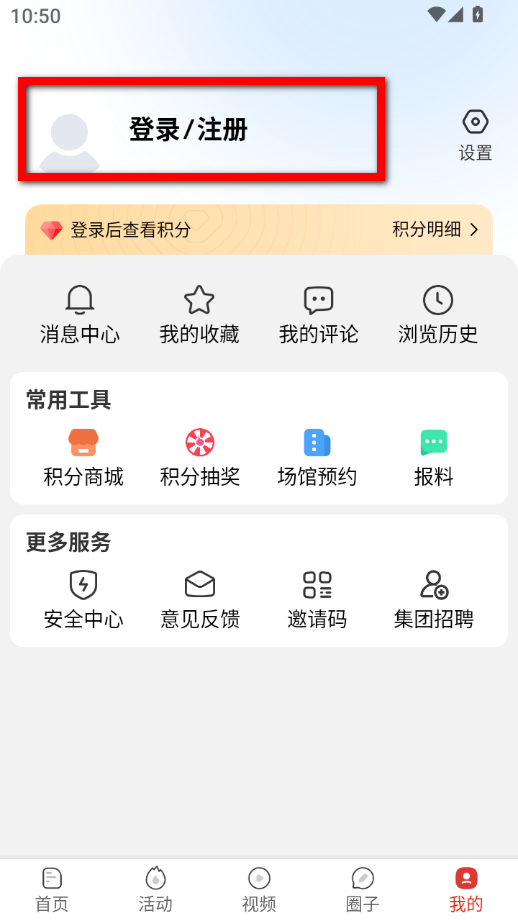 2、在我的頁(yè)面,點(diǎn)擊登錄/注冊(cè)選項(xiàng),進(jìn)入登錄注冊(cè)界面。
