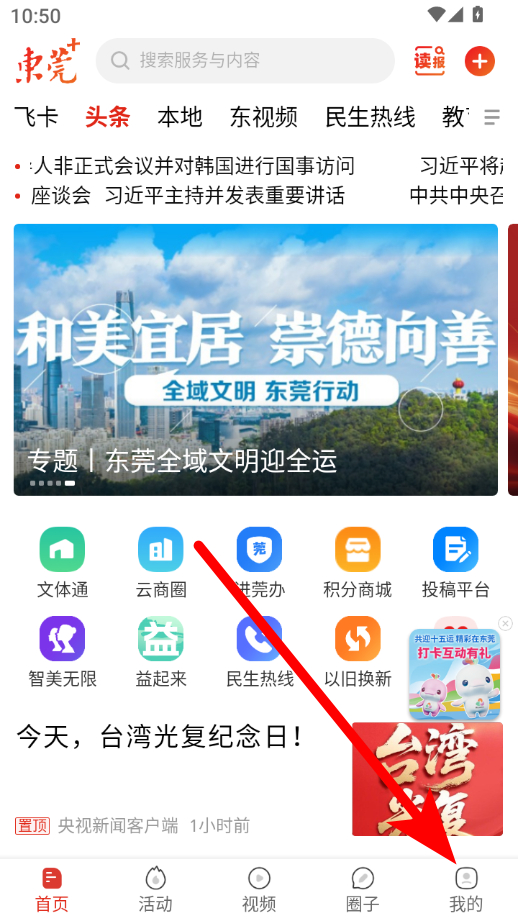 1、在東莞新聞app進(jìn)入首頁(yè),點(diǎn)擊我的進(jìn)入登錄頁(yè)面。