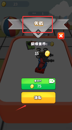 3、失敗后領(lǐng)取15金幣,或花費75金幣購買嘗試藥繼續(xù)。