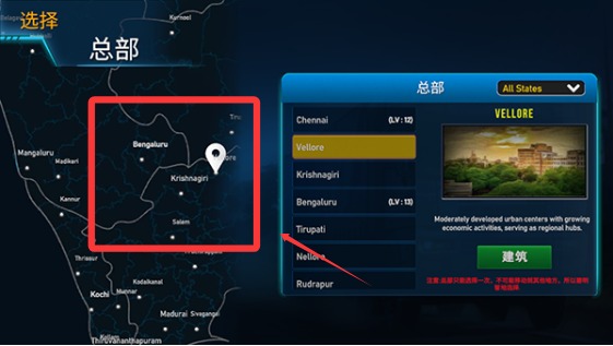 1、進入游戲選擇總部位置,總部只能選擇一次不可以移動到其它地方。