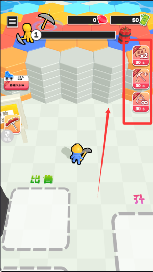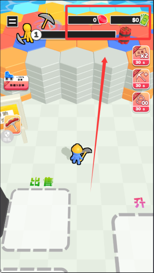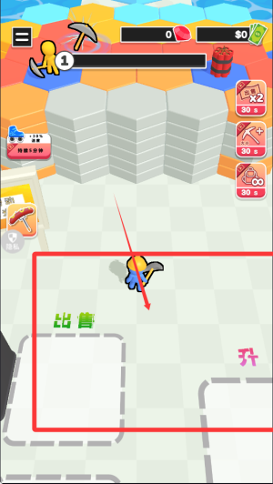 1、基礎(chǔ)玩法是通過揮動(dòng)錘子挖掘礦石,收集化石和寶石,然后將它們?nèi)蹮挸山疱X用于升級(jí)裝備和設(shè)施。