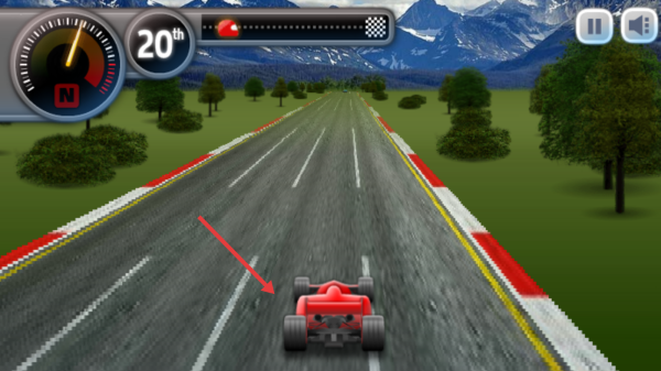 3、進(jìn)入森林賽道后,沿道路中線駕駛紅色賽車,借助儀表盤把控節(jié)奏,避開潛在障礙,沖向終點(diǎn)。