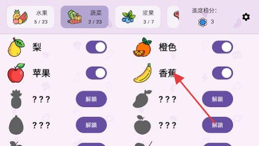 3、收集各類物品,滿足水果、蔬菜等類別進(jìn)度,解鎖新物品,擴(kuò)充圖鑒。