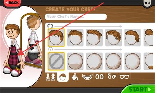 2、創(chuàng)廚師優(yōu)先改發(fā)型!選最顯眼的(第一排第三個(gè)),名字填小廚好記,面部選微笑嘴+圓眼鏡。
