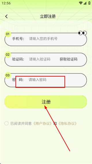 3、設(shè)置密碼,點(diǎn)擊注冊(cè)按鈕,即可完成賬號(hào)注冊(cè)。