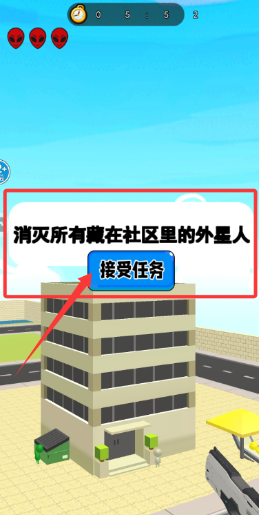 3、鎖定偽裝的外星人后,點擊射擊按鈕攻擊,完成消滅任務可推進游戲進程。