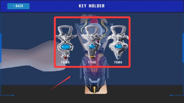 1、啟動(dòng)應(yīng)用后,選擇心儀的奧特曼形態(tài),進(jìn)入模擬操作界面,屏幕中間呈現(xiàn)變身器模型,底部顯示能量槽與形態(tài)切換按鈕。