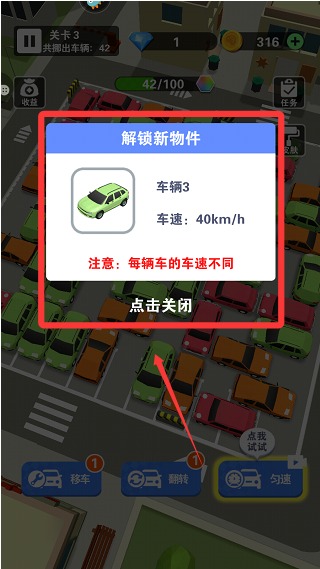 2、玩家需拖動汽車進(jìn)行操作,每輛車只能前后移動,必須根據(jù)現(xiàn)場位置靈活判斷,避免堵塞或撞車。