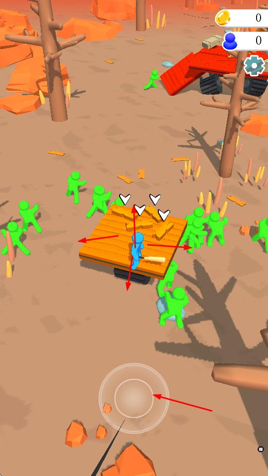 2、場(chǎng)景中分布木板、道具,靠近并收集,可能用于建造、升級(jí),或解鎖載具,提升生存、戰(zhàn)斗能力。