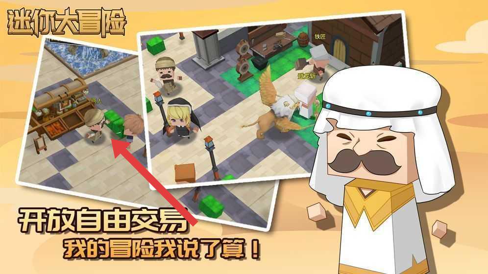 2、參與“開放自由交易”(紅箭頭指向),與NPC或玩家互動,買賣道具,豐富冒險(xiǎn)資源。