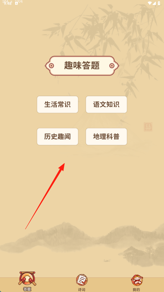 1、選擇答題分類,如歷史趣聞,進入后閱讀題目,思考后選答案,完成答題。