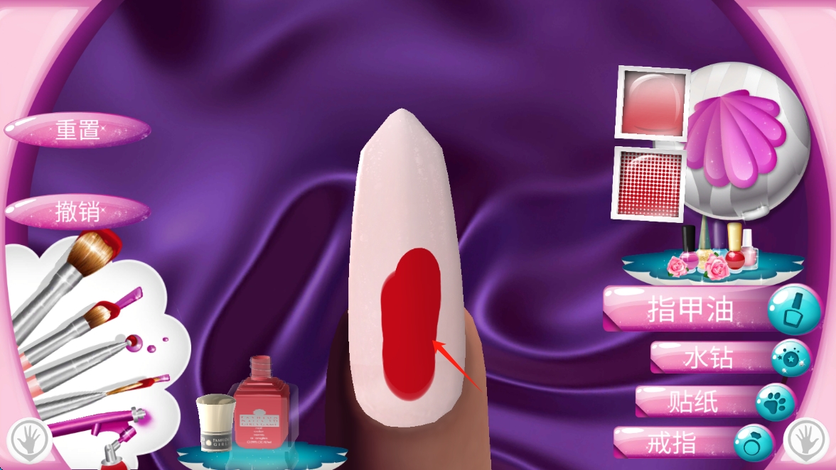 1、基礎(chǔ)操作:鼠標點擊選擇工具與操作區(qū)域,Q/E鍵切換工具,R鍵旋轉(zhuǎn)視角,F(xiàn)鍵固定美甲,C鍵打開工具庫,M鍵打開任務(wù)列表,N鍵查看顧客需求,Tab鍵切換設(shè)計模式。
