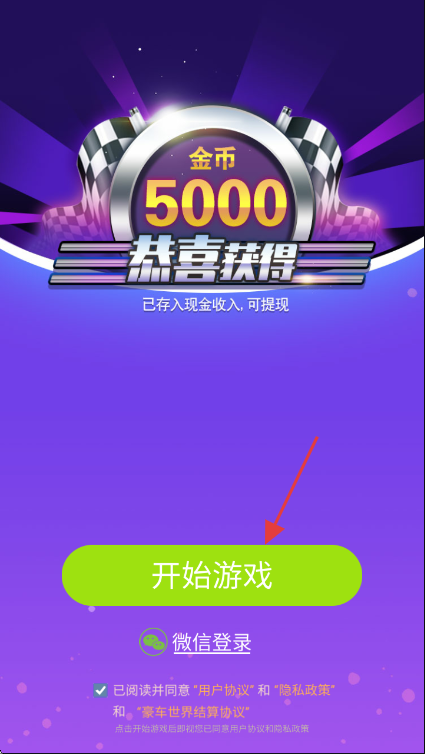 1、點(diǎn)擊綠色【開始游戲】按鈕,進(jìn)入游戲主界面,開啟汽車相關(guān)玩法。