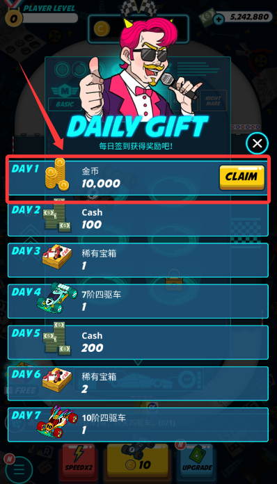 3、每日首次登錄會自動發(fā)放金幣獎勵,可用于升級賽車性能或解鎖全新配件。