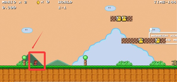 3、當(dāng)靠近墻塊時(shí),不斷跳躍獲得蘑菇和金幣,蘑菇可以讓馬里奧的身體變大,金幣可以購(gòu)買(mǎi)道具。