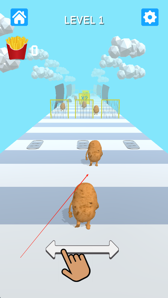1、進(jìn)入游戲選擇蔬菜角色,滑動(dòng)屏幕操控角色左右移動(dòng),點(diǎn)擊屏幕跳躍躲避菜刀、滾軸等障礙,收集沿途金幣與加速道具。