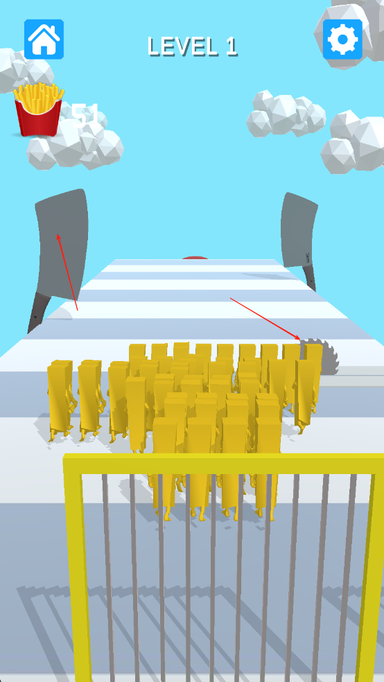 1、障礙互動(dòng)設(shè)計(jì):部分陷阱可通過(guò)收集道具觸發(fā)反向機(jī)制,如用磁鐵吸引菜刀開(kāi)辟安全路徑,增加跑酷策略性與趣味性。