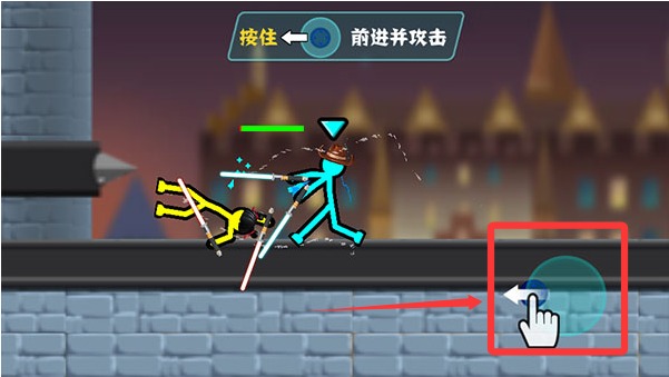 3、按住并拖動(dòng)既可以按住指定方向進(jìn)攻。