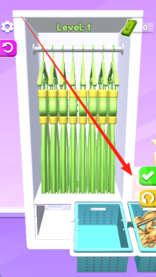 1、基礎(chǔ)操作體系:點(diǎn)擊屏幕選擇衣物,滑動(dòng)屏幕調(diào)整位置,雙指操作旋轉(zhuǎn)角度,通過組合操作完成復(fù)雜收納任務(wù),操作簡單直觀,讓玩家專注創(chuàng)意搭配。