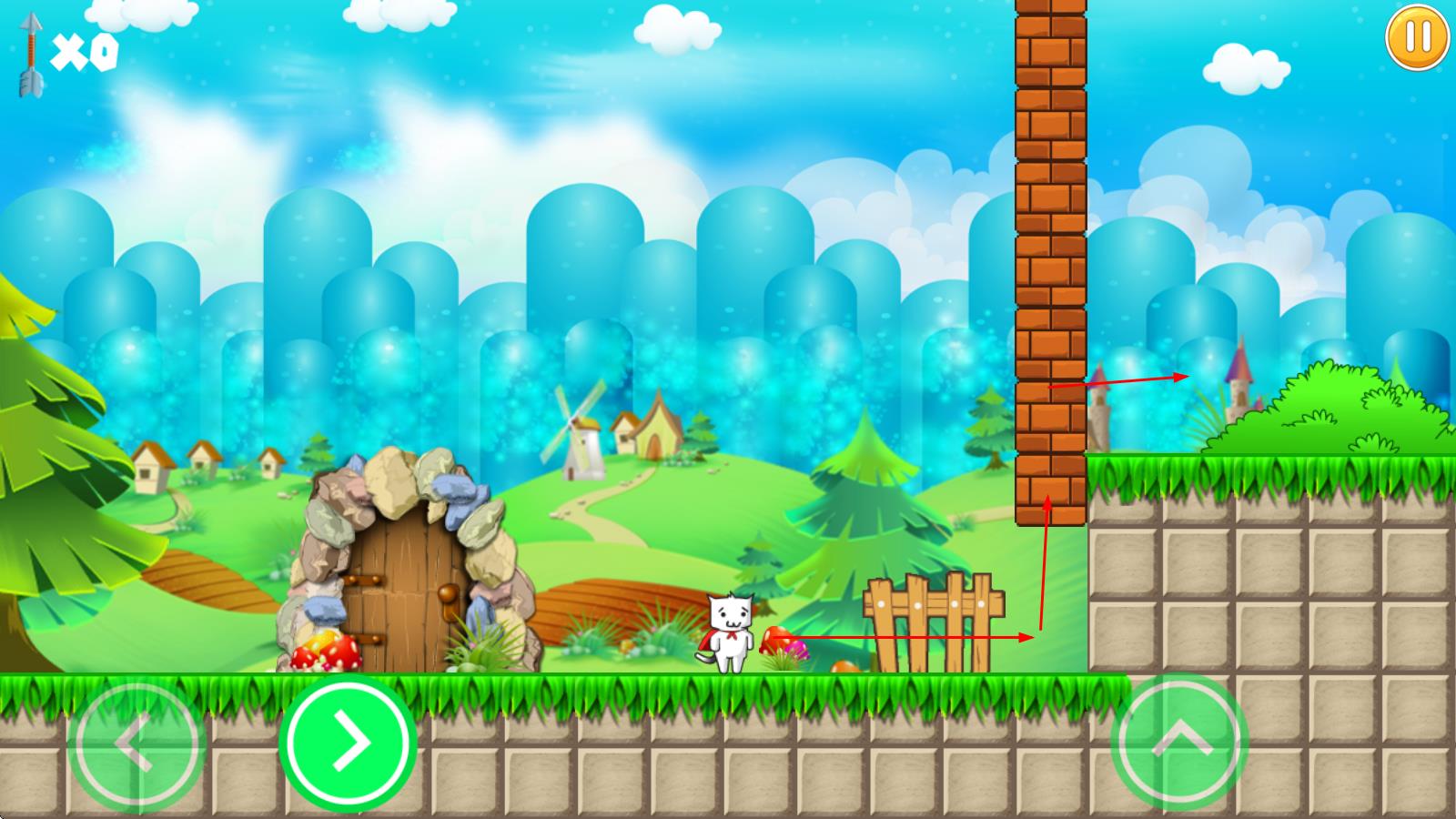 1、進(jìn)入超級(jí)貓里奧IIHD,通過(guò)經(jīng)典虛擬按鍵控制貓里奧左右移動(dòng)、向上跳動(dòng),開(kāi)啟在滿是陷阱關(guān)卡中的初次冒險(xiǎn)。
