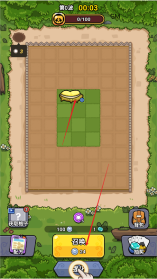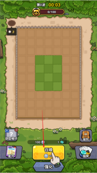2、植物召喚:在空地,消耗陽光(資源)點“召喚”,布置攻擊植物。