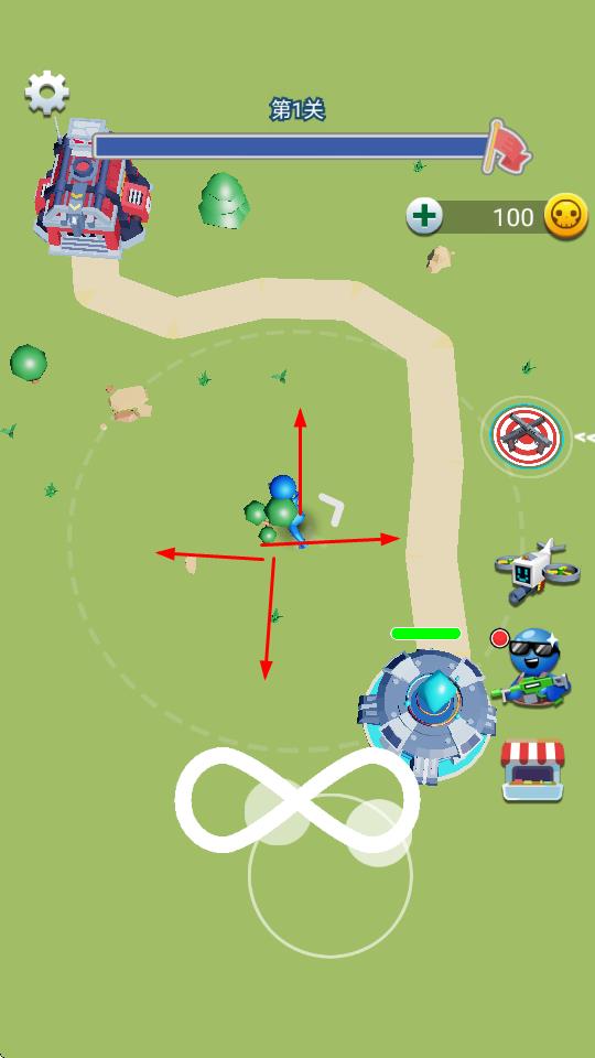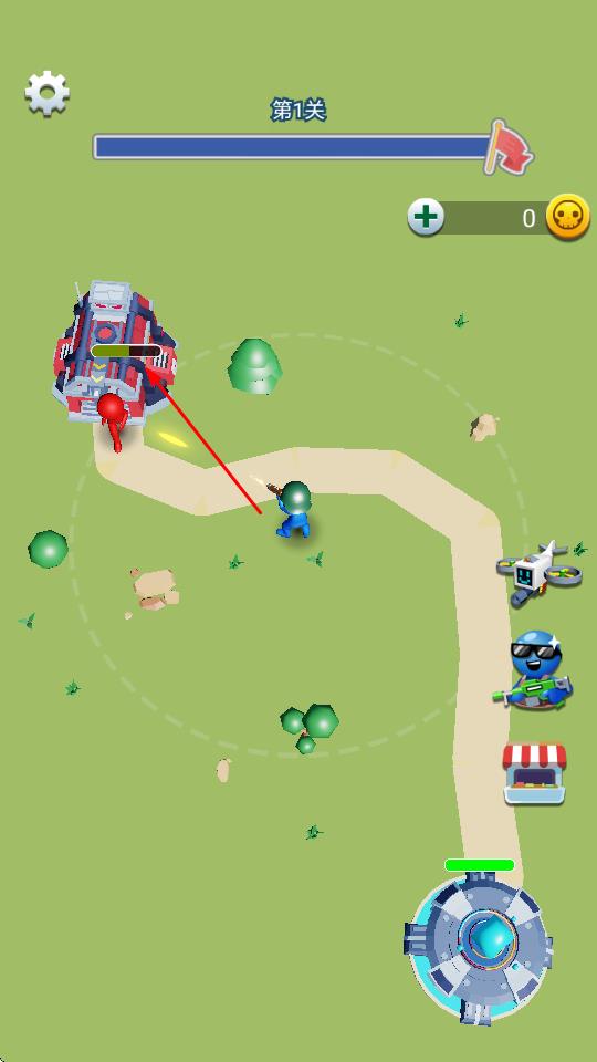 3、戰(zhàn)斗中射擊來襲敵人(紅色火柴人),保護(hù)堡壘血量,推進(jìn)第1關(guān),解鎖新武器、關(guān)卡。
