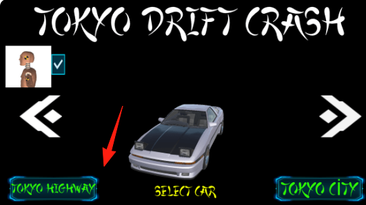 1、在選場(chǎng)景界面,點(diǎn)擊【箭頭】指向的“TOKYOHIGHWAY”,選定該賽道開(kāi)始游戲。