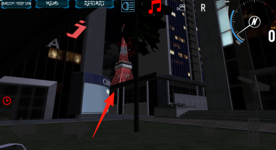 2、駕駛時(shí),朝著【箭頭】所指東京塔方向,在城市道路行駛,注意建筑躲避。