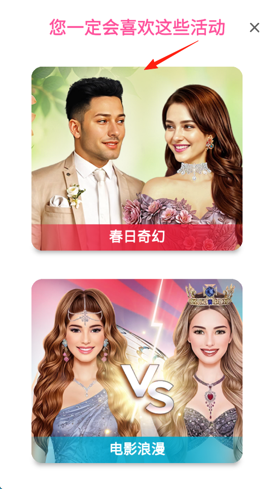 2、查看活動推薦,選感興趣的活動參與,獲取獎勵后用于解鎖新造型和服飾。