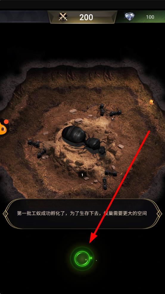 2、通過點(diǎn)擊相應(yīng)按鈕,派遣螞蟻隊(duì)伍進(jìn)行資源采集、建造蟻巢等操作,發(fā)展壯大蟻群勢力。